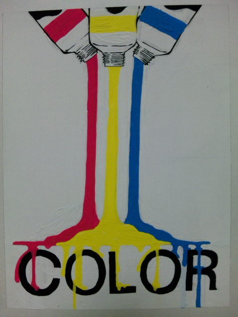 与えられた「COLOR」の文字を使い、「任意の色」をテーマに色彩構成しなさい。