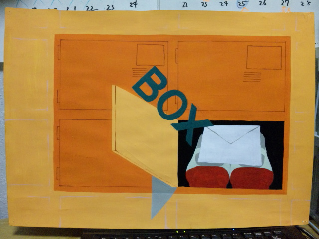 なお、与えられた「BOX」の文字を必ず使うこと。色数、技法などは自由とする。