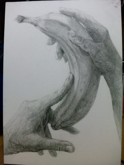 両手と任意の果物をモチーフにデッサンしなさい。