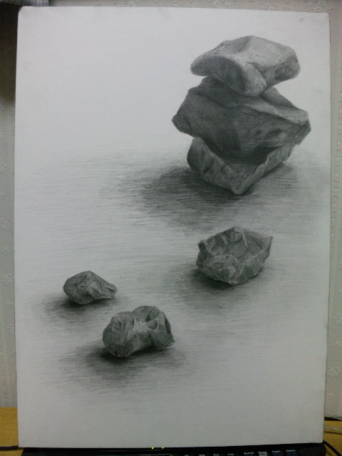 拾ってきた石を構成して細密描写しなさい。