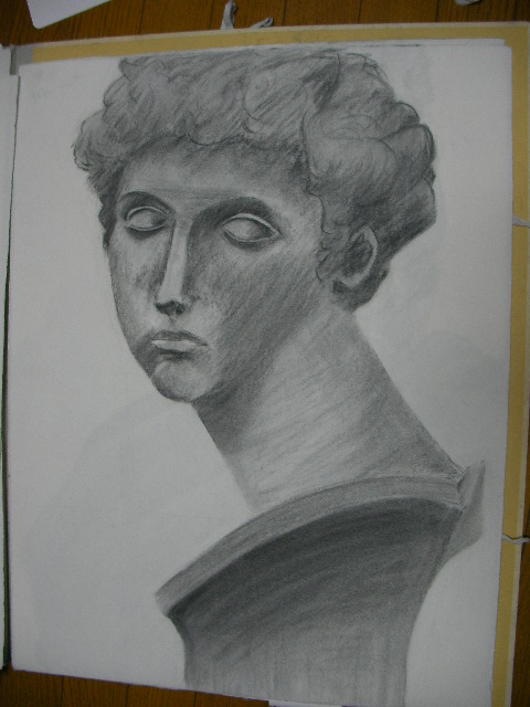 描き終わってから顔のマズさに気付いた、人物デッサンです。